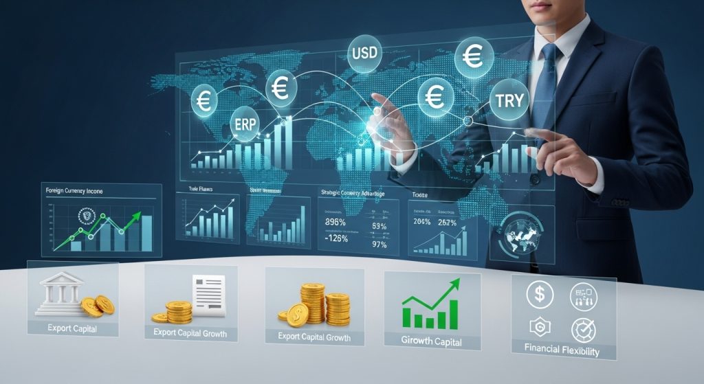 Dış ticaret, şirketlere döviz geliri ve finansal esneklik sağlar; kur dalgalanmaları stratejik avantaja dönüşür ve ihracat finansman araçlarıyla büyüme sermayesine kolay erişim mümkün olur.